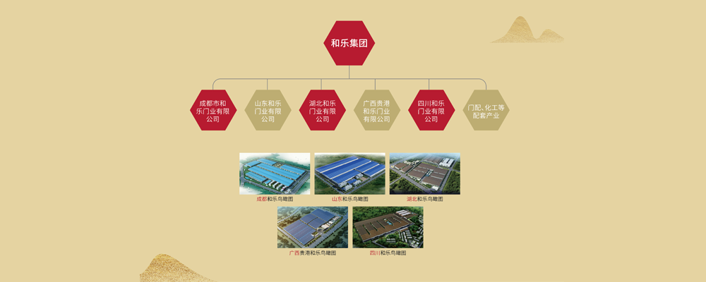 和乐门窗于2008年进入门窗行业,在四川成都、山东齐河、湖北咸宁、广西贵港、四川宜宾等地投资建设多个门窗产业基地,同时建立了多个门配套产品及服务企业,总占地3000余亩,生产建筑面积逾200万平米,是一家集防盗门、防火门、非标门、木门、铝型材、卫浴门、耐火窗、卷帘门、工业门、医用门、学校门等产品研发、制造、销售、物流和安装售后服务于一体的现代综合性企业,是全国大型规模化门窗企业之一。
